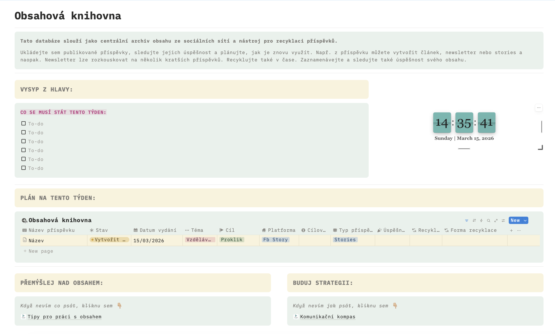 ✔ Notion databáze příspěvků + archiv obsahu